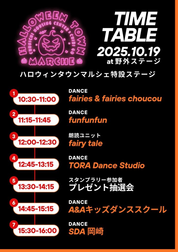 参加者限定の豪華プレゼントもあり!キッズダンスなどのステージパフォーマンス、キッチンカー、マルシェが集まり、ファミリーで楽しめるハロウィン空間を演出します。